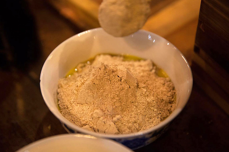接著,人們在鍋裡放適量的水、麵粉、肉片、乾辣椒和鹽巴,然後加入圓形的奶渣烹煮。這時再拿另外一口鍋盛放適量的水煮碎麥片,待煮到八成熟的時候,倒入先前那口鍋裡攪勻,然後用文火悶熟即成。